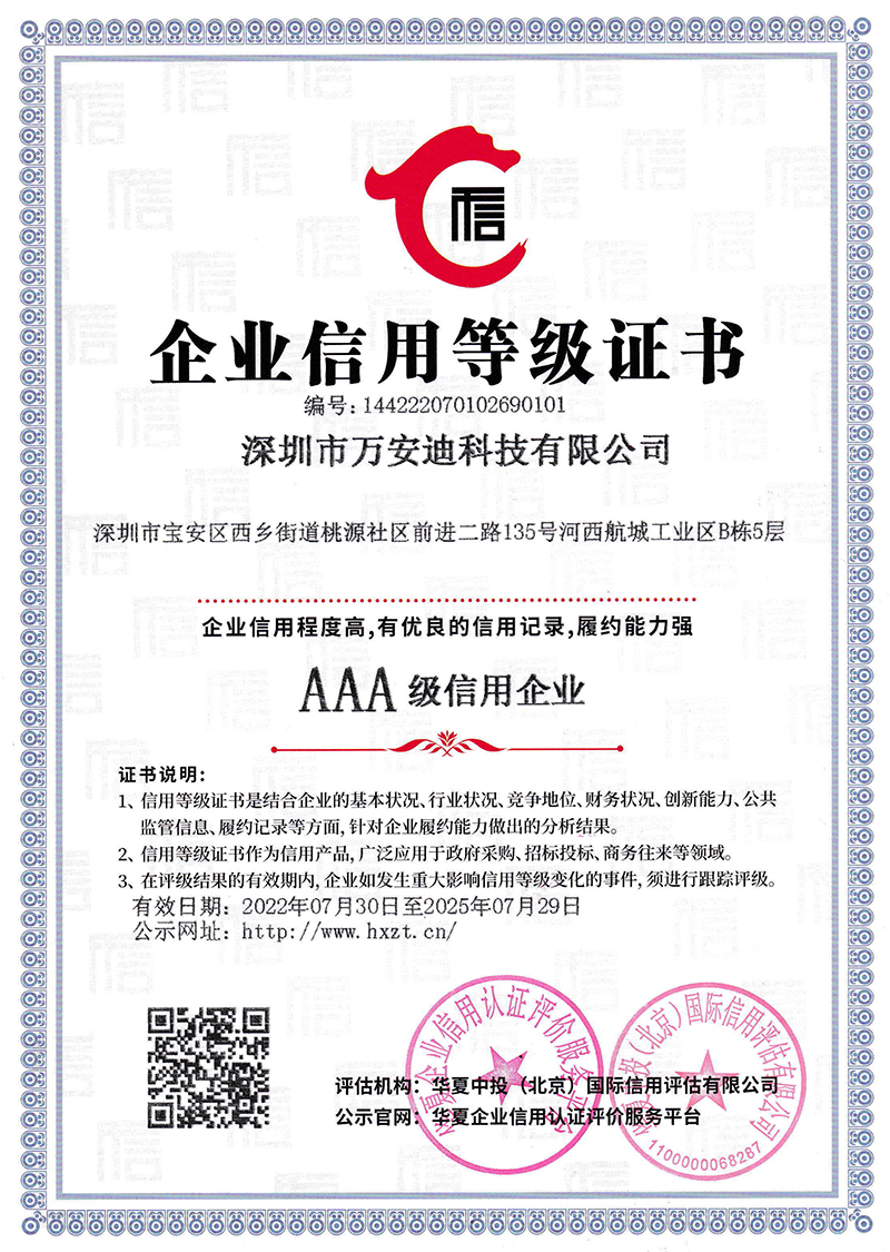 技術(shù)創(chuàng)新是萬安迪持續(xù)發(fā)展的不竭動力,只有創(chuàng)新才能在激烈的競爭中把握先機,贏得主動,在新技術(shù)、新產(chǎn)品不斷升級浪潮中始終保持旺盛的生命力。萬安迪在研發(fā)技術(shù)領(lǐng)域投入了大量資金,公司的研發(fā)人員實現(xiàn)了多項發(fā)明專利、實用新型專利、軟件著作權(quán)專利以及外觀設(shè)計專利。科技創(chuàng)造安全,質(zhì)量成就價值,自公司成立以來萬安迪一直在持續(xù)穩(wěn)定增長,并不斷地完善產(chǎn)品種類、服務(wù)以及系統(tǒng)的解決方案。